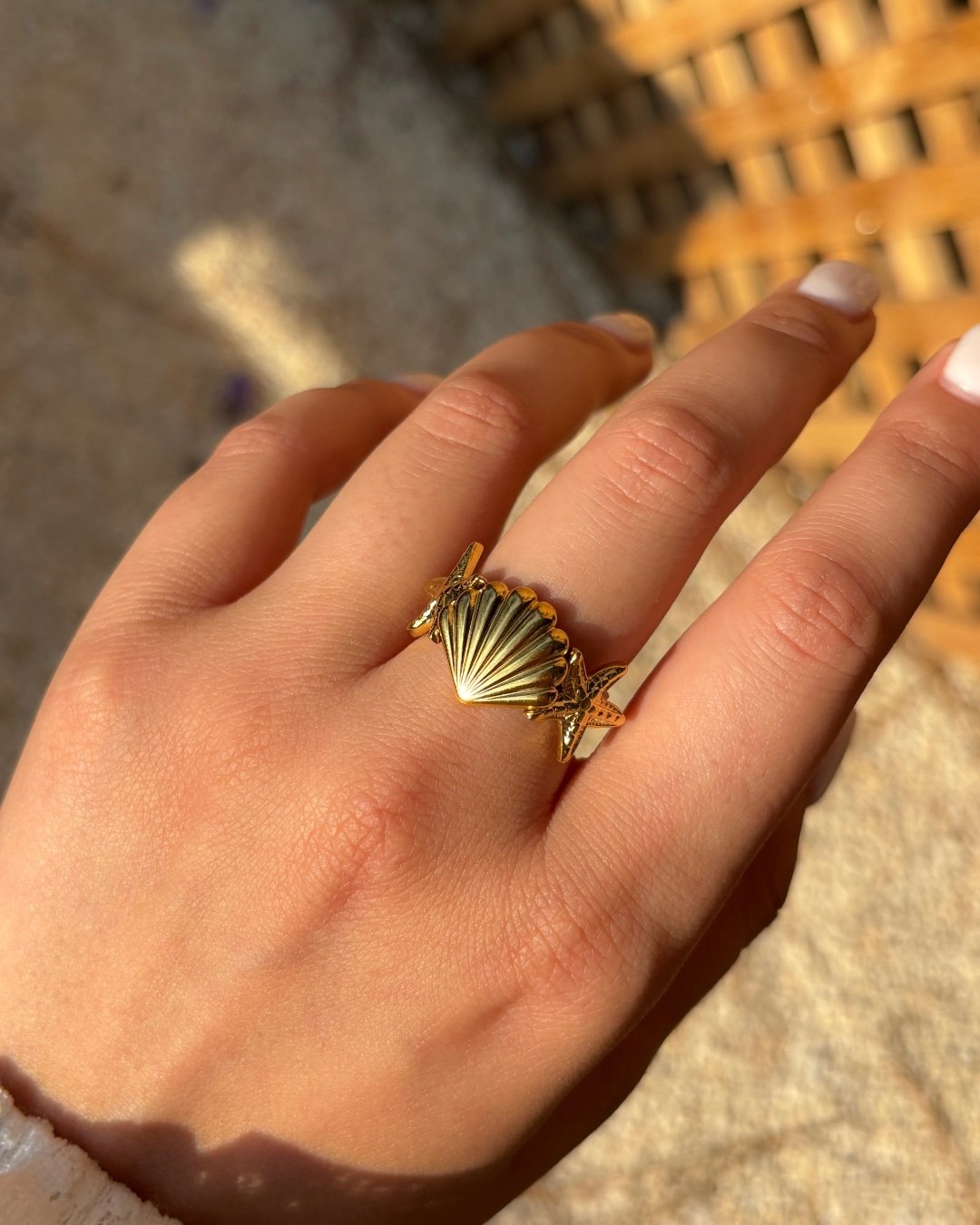 Anillo ajustable de conchita con estrellas de mar, tamaño grande ajustable del 7 al 10