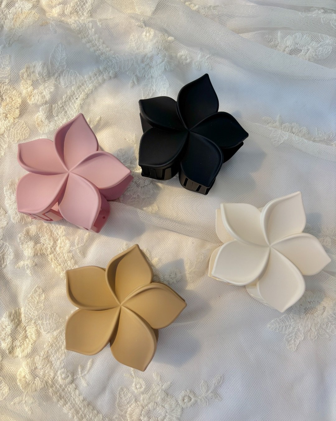Gancho para el cabello de flor grande pastel con acabado mate.