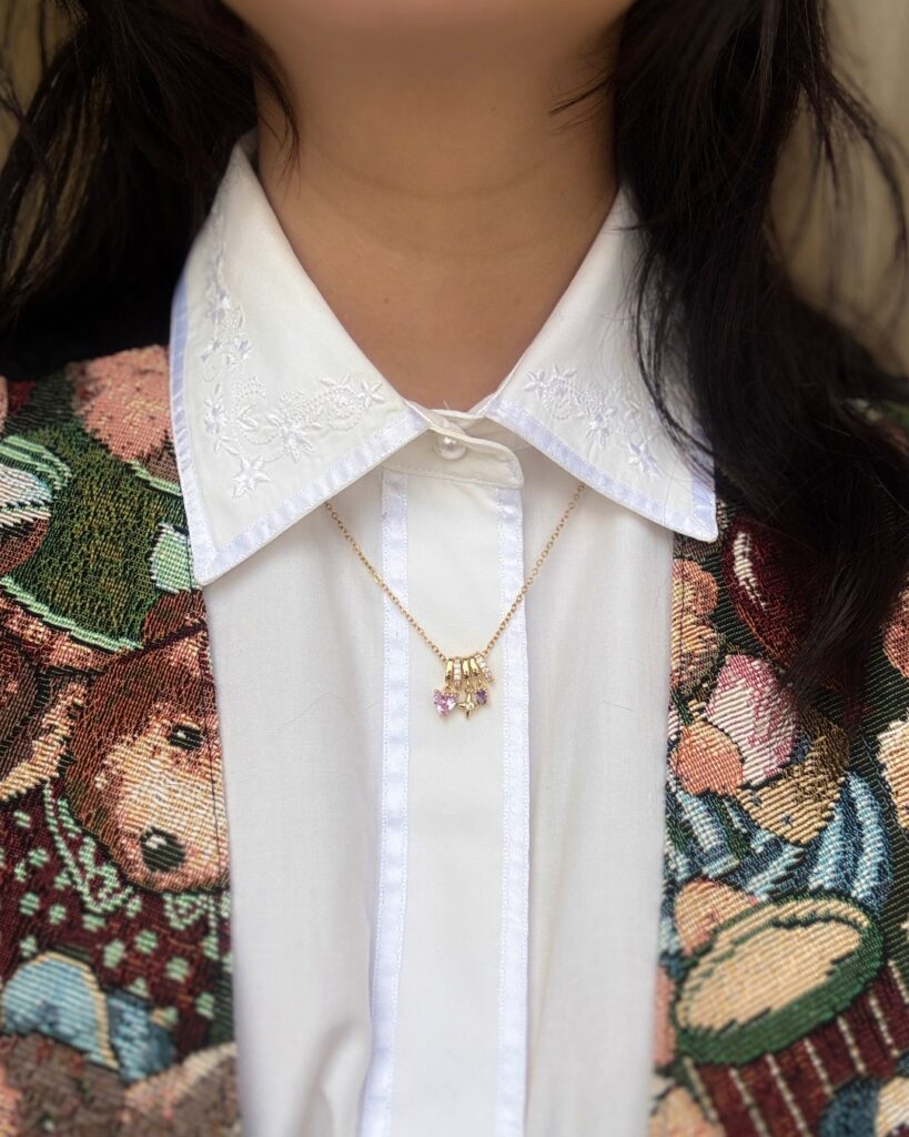 Collar simple con hermosos charms de corazón, lucero y cristal lila.